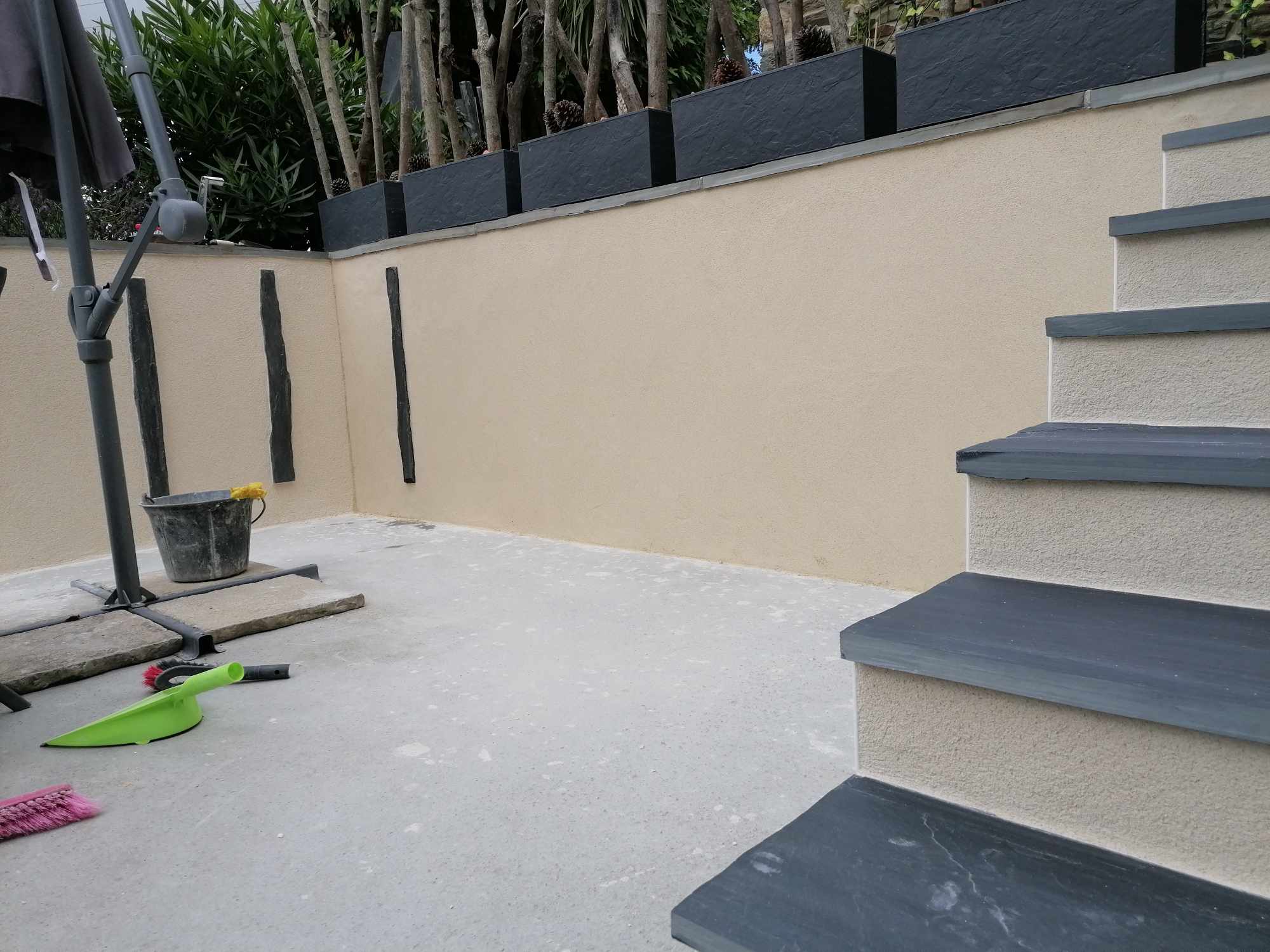 Habiller un mur avec un enduit, c’est lui donner sa touche finale, son âme. Pour nous, c’est un jeu passionnant de matières et de couleurs, où nous pouvons créer une ambiance sur mesure. Nous adaptons chaque finition pour qu’elle s’harmonise avec votre maison et votre jardin, pour un résultat qui vous est propre.