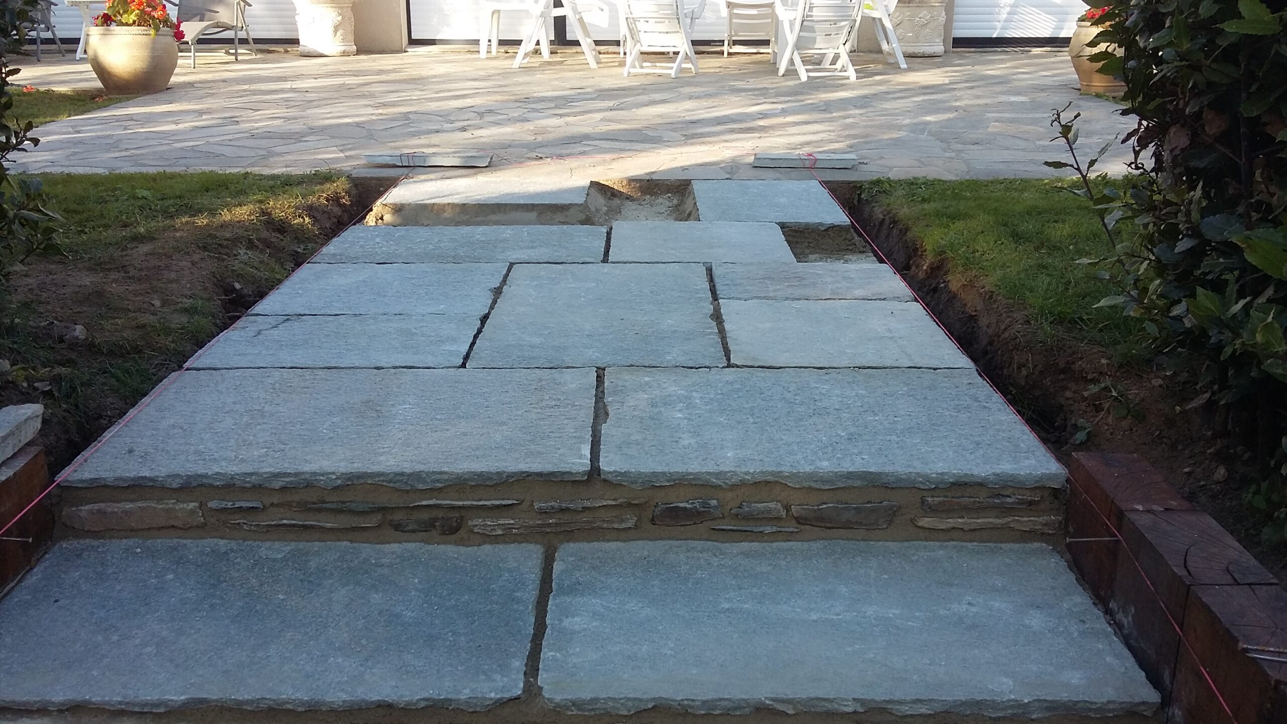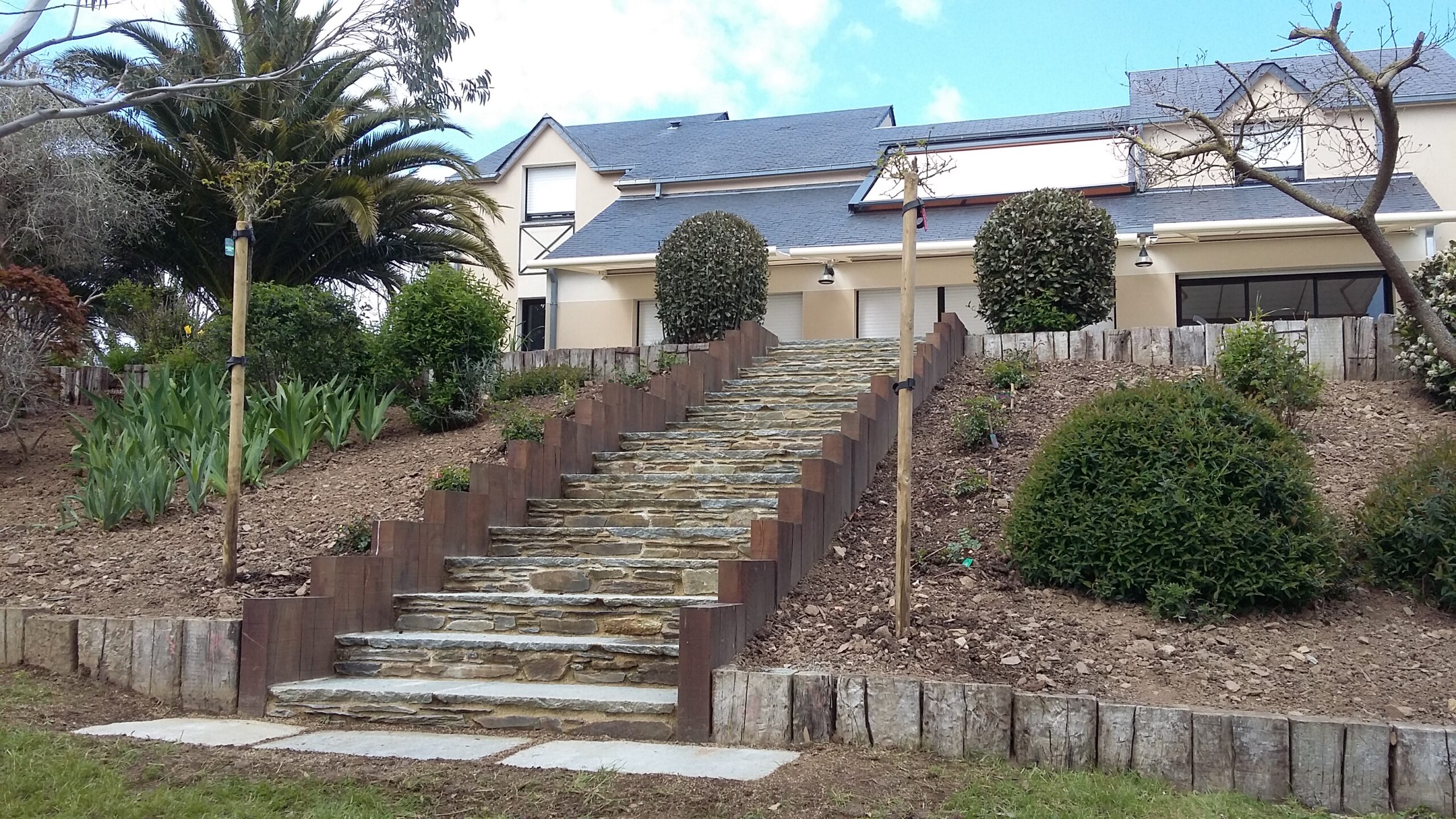 Chaque terrain en pente est une invitation à l’inventivité. Nous voyons la création d’un escalier extérieur comme une occasion unique de sculpter le paysage et de concevoir un passage qui vous ressemble. C’est un travail de sur-mesure, où nous adaptons les matériaux et les lignes pour qu’ils s’intègrent harmonieusement à votre jardin.